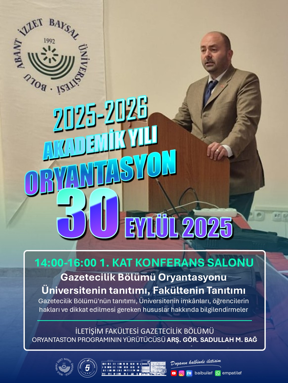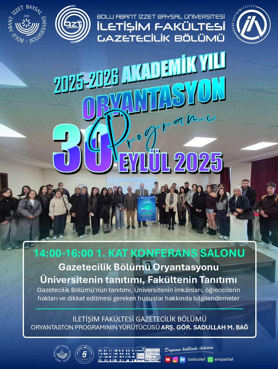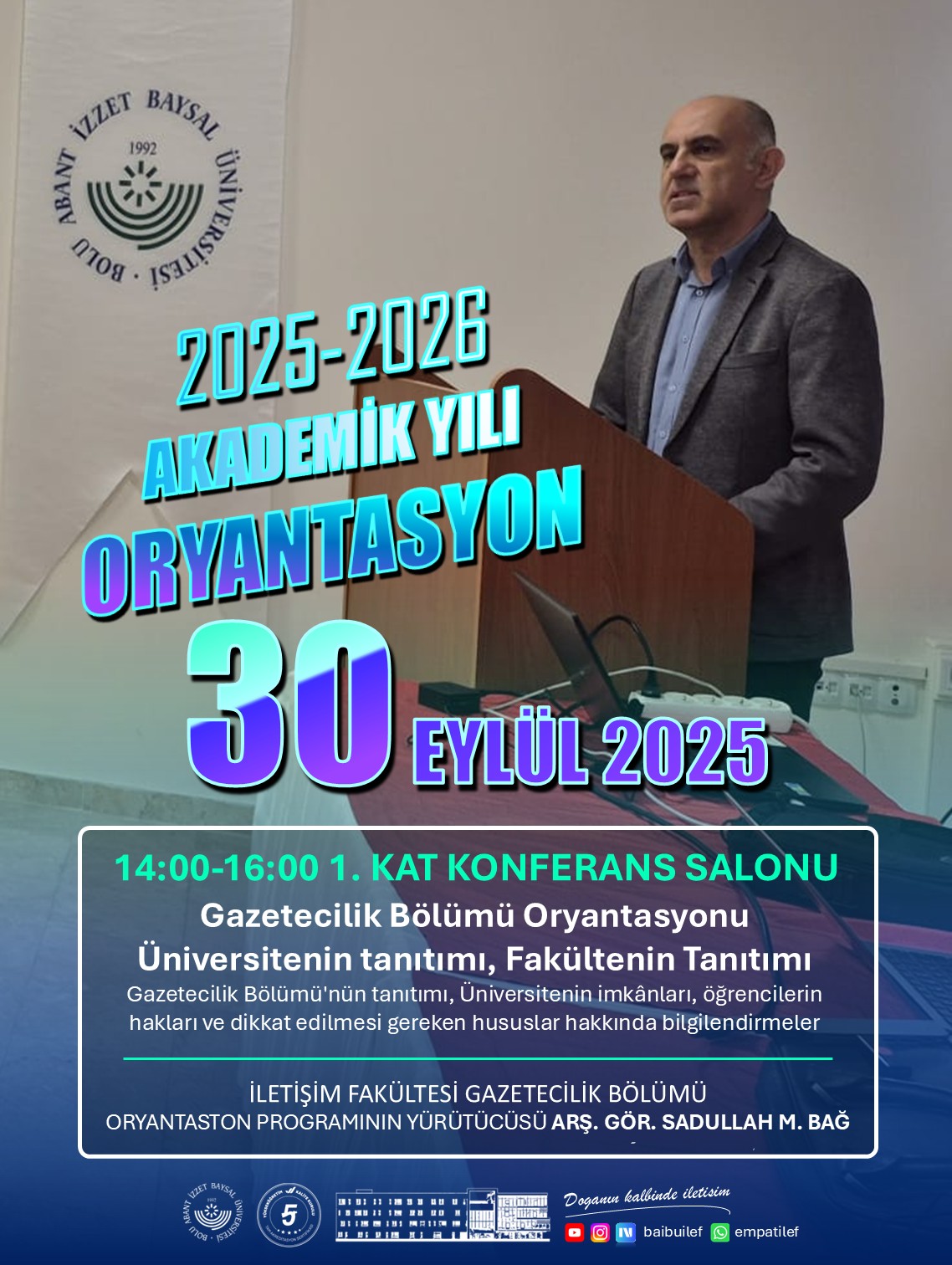 The Department of Journalism at Bolu Abant İzzet Baysal University's Faculty of Communication held an orientation program for new students on September 30, 2025.