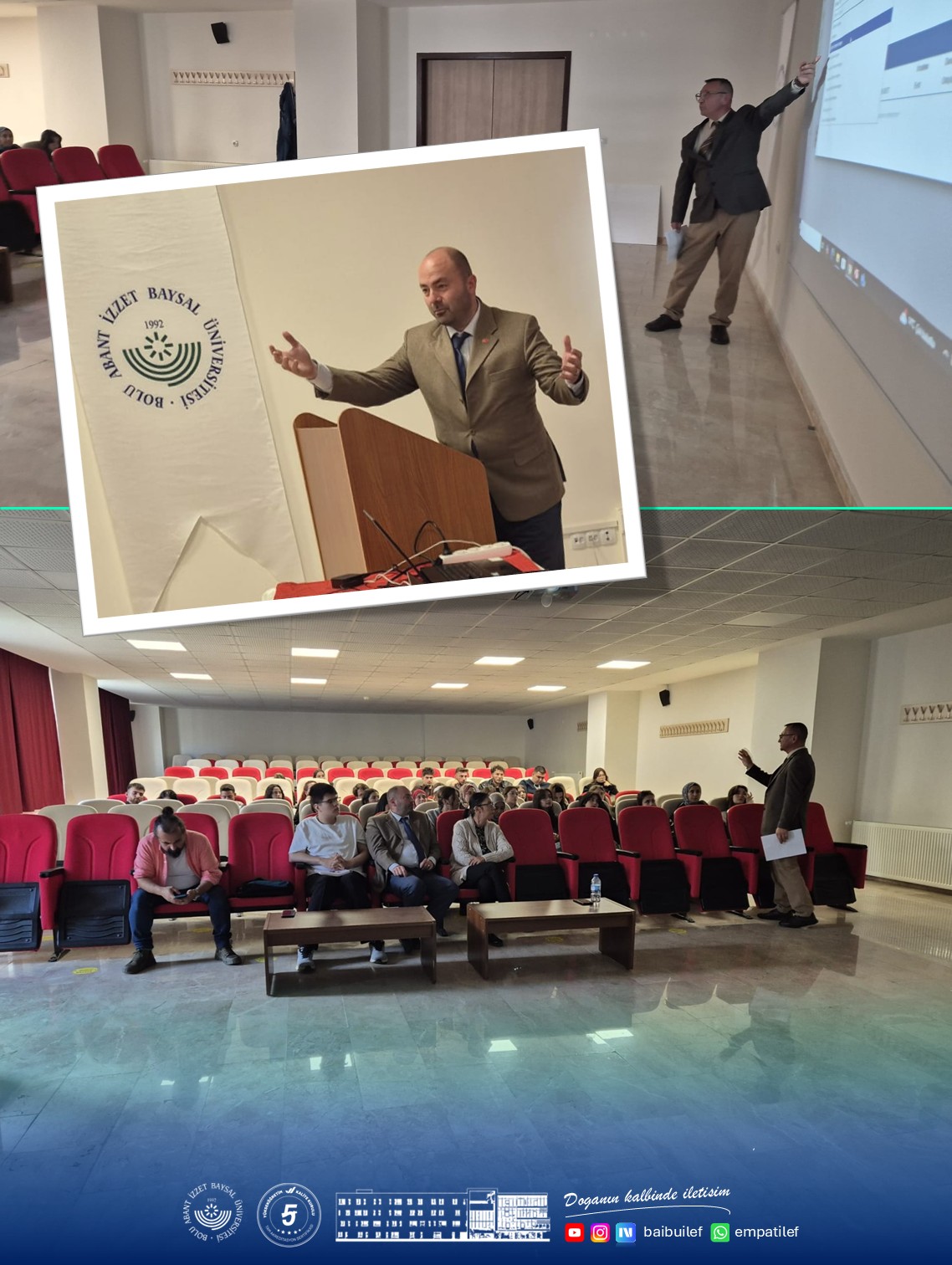 Associate Dean of the Faculty, Assoc. Prof. Dr. Gülşah Sarı, welcomed the first-year students and provided information about the course structure. Department Head, Prof. Dr. Selami Özsoy, highlighted the oppression and massacre in Gaza, emphasizing the need for students to be aware of the realities and contribute to the homeland, nation, and humanity. Prof. Dr. Özsoy also spoke about the values the late İzzet Baysal brought to Bolu and provided a comprehensive introduction to the university and campus.