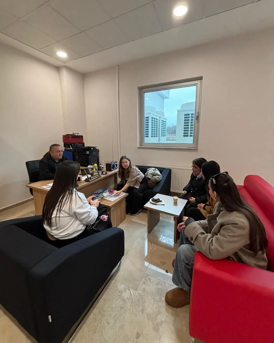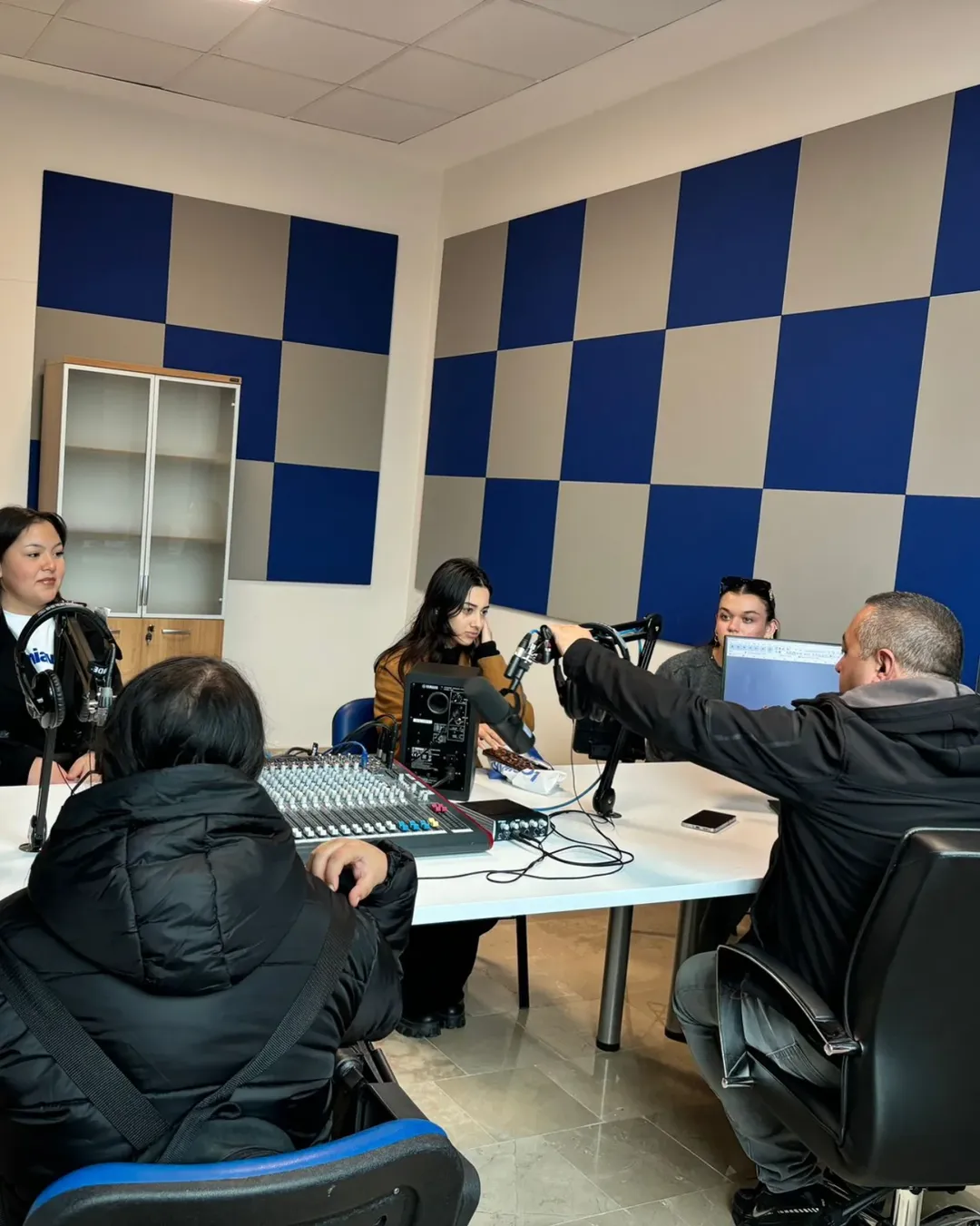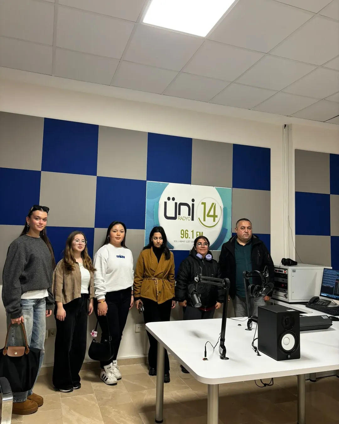 The visit began with a warm welcome from Ramazan Sarı, General Coordinator of Radio Uni 14. Sarı explained in detail the radio station's professional broadcasting processes, team structure, program production stages, and applied learning models in which our students actively participate.