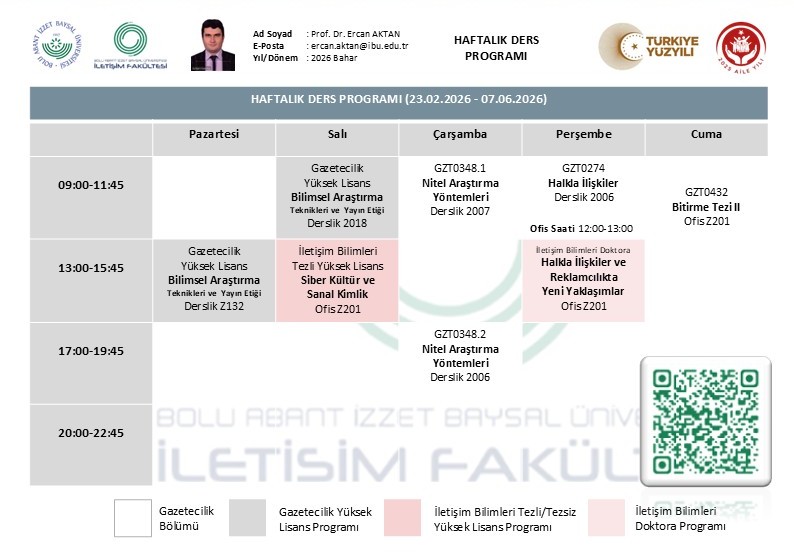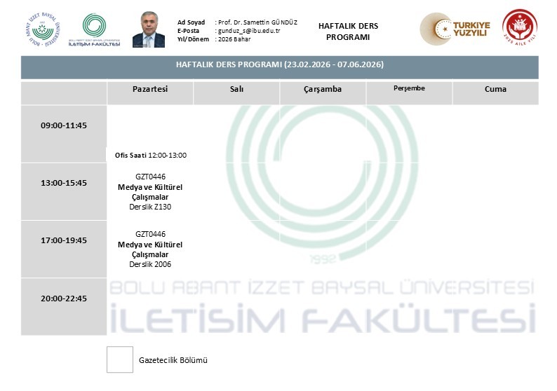 2025-2026 Spring Semester Faculty Weekly Course Schedules