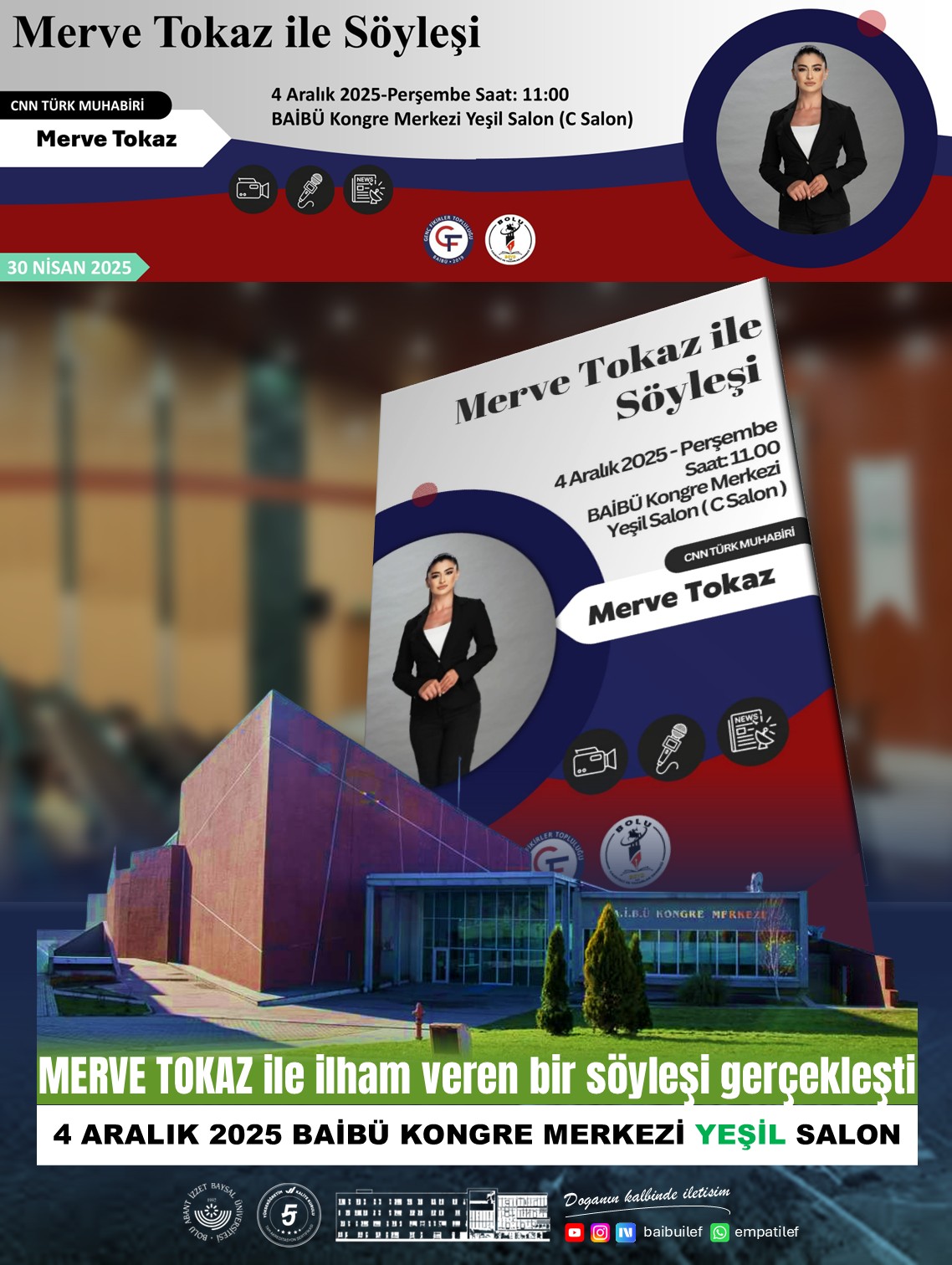 BAİBÜ İLETİŞİM FAKÜLTESİ CNN TÜRK MUHABİRİ MERVE TOKAZ ile TUTKU DOLU GAZETECİLİK TECRÜBELERİ, İLHAM VEREN ANILARI BOLU’DA BULUŞUYOR