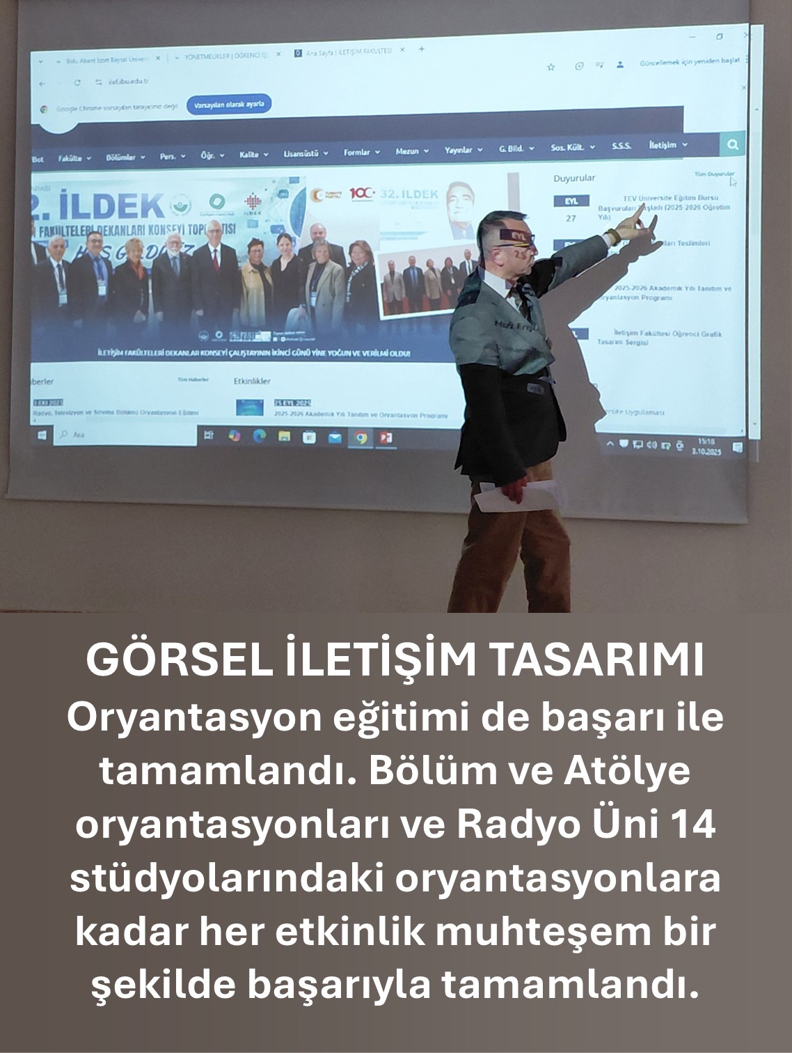 Haftanın en dikkat çekici etkinliklerinden biri Görsel İletişim Tasarımı Bölümü Oryantasyonu oldu. Programda bölüm akademisyenleri, öğrencilerle bir araya gelerek deneyimlerini, tavsiyelerini ve motivasyon verici mesajlarını paylaştılar.