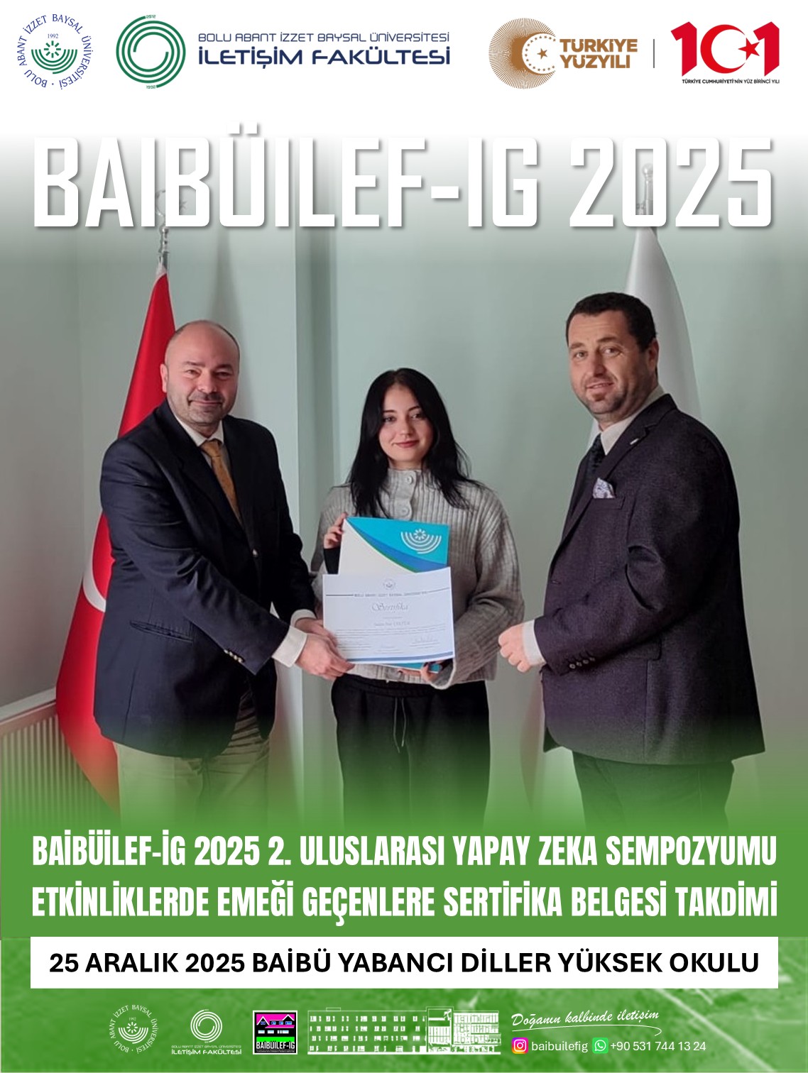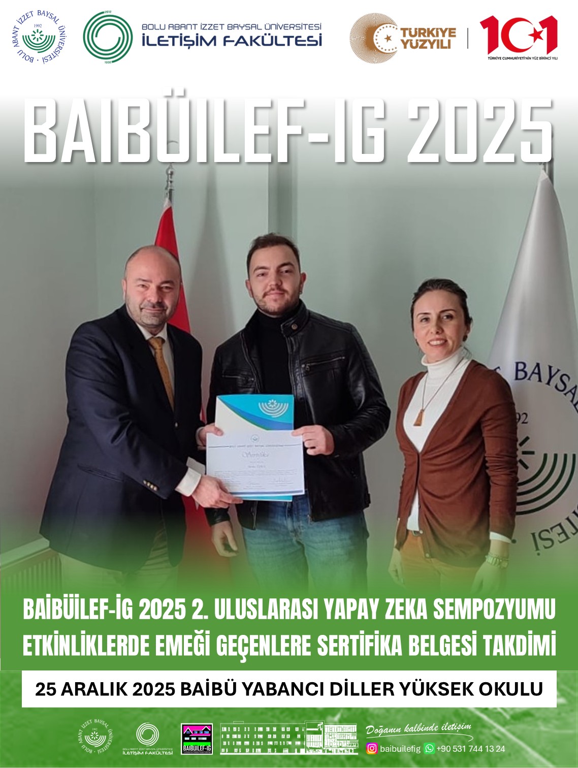 Bolu Abant İzzet Baysal Üniversitesi bünyesinde yürütülen fakülteler arası akademik iş birliğinin başarılı örneklerinden biri, BAİBÜ İletişim Fakültesi tarafından düzenlenen BAİBÜİLEF-İG 2025 Uluslararası Yapay Zekâ ve Hipermedya Sempozyumu kapsamında bir kez daha somutlaştı.