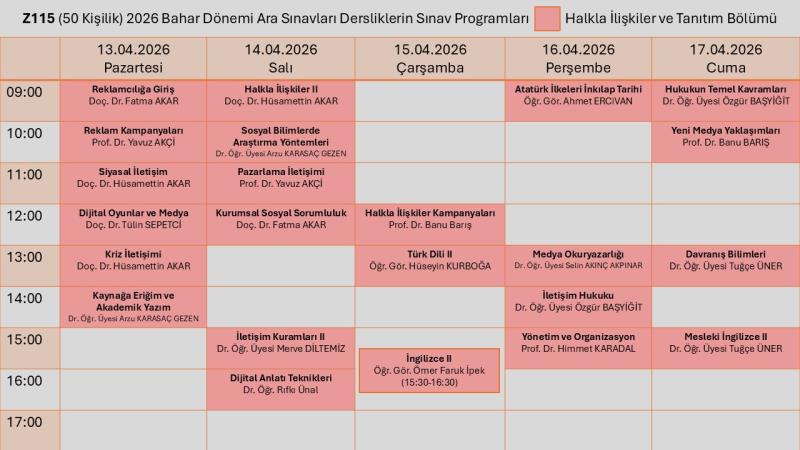 Halkla İlişkiler ve Tanıtım Bölümü Ara Sınav Programı için tıklatınız.