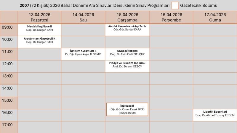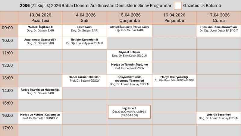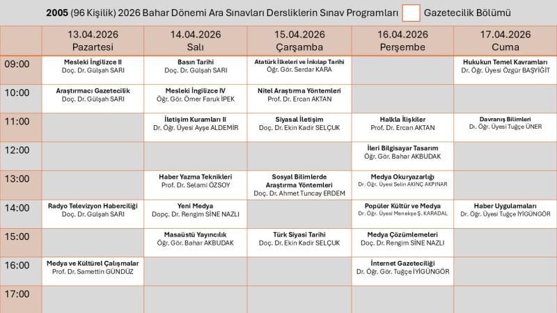 Gazetecilik Bölümü Ara Sınav Programı için tıklayınız.