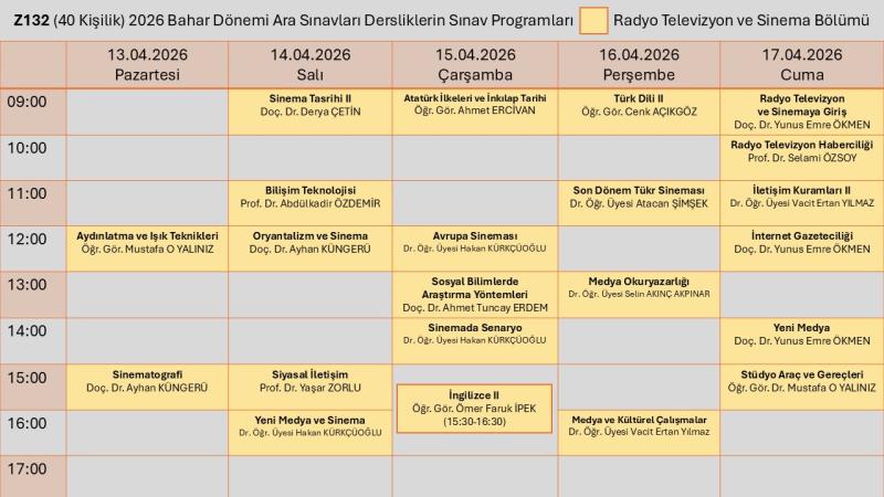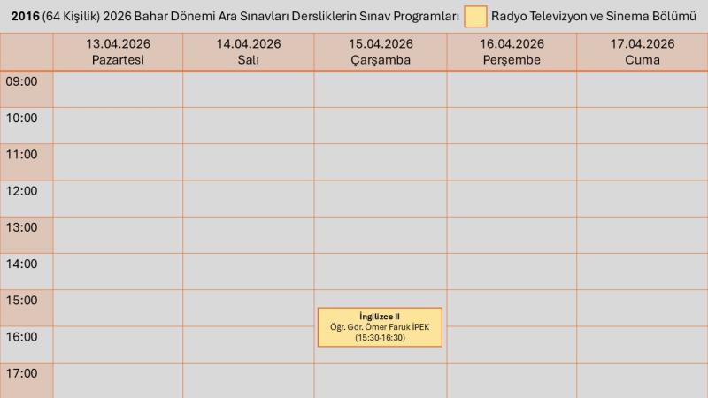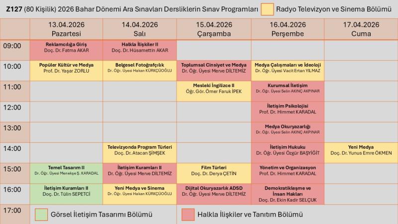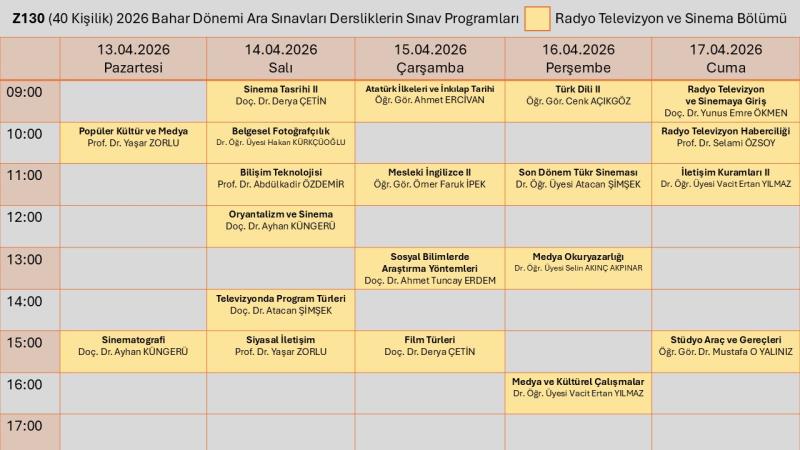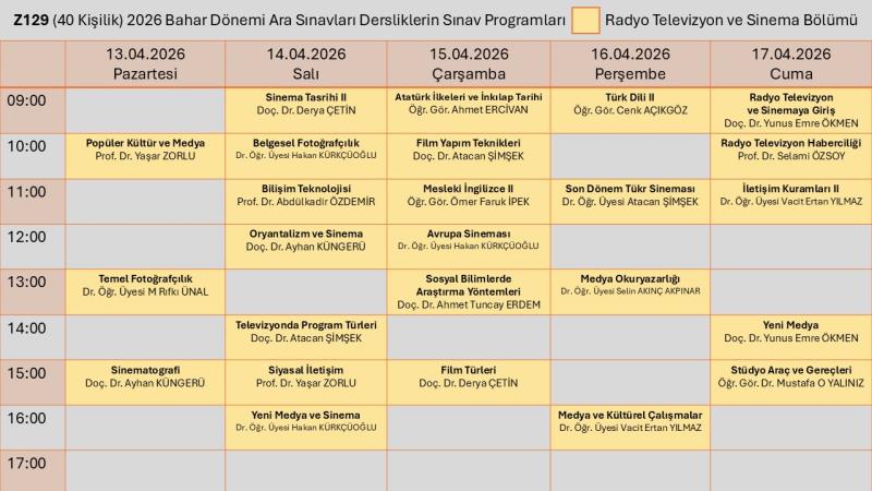 Radyo Televizyon ve Sinema Bölümü Ara Sınav Prograamı için tıklayınız.