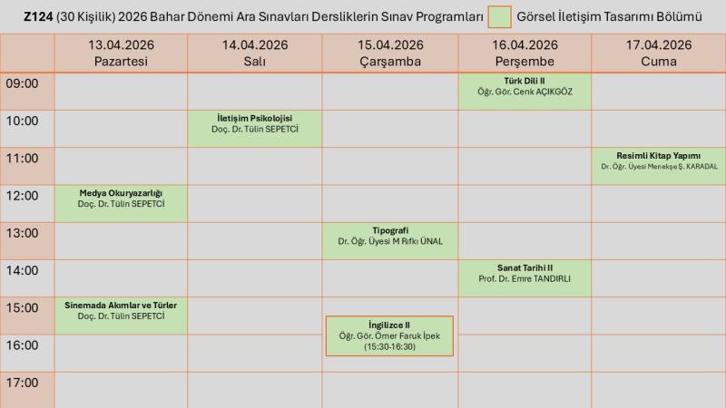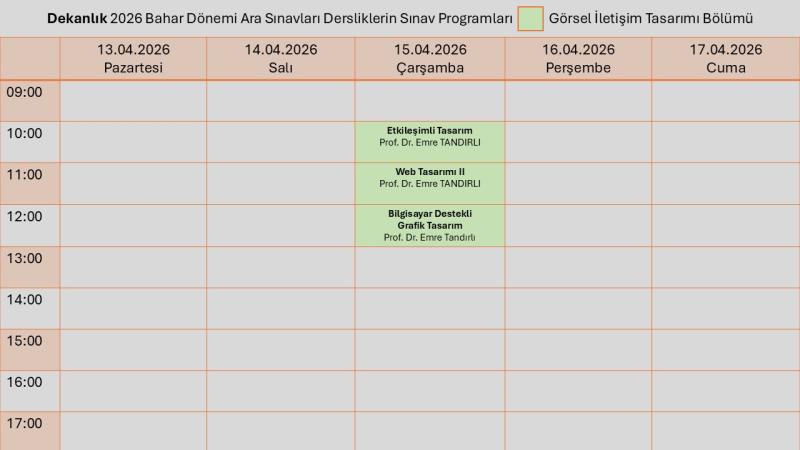 Görsel İletişim Tasarımı Bölümü Ara Sınav Prograamı için tıklayınız.