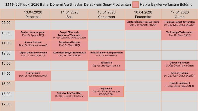 2026 Bahar Dönemi Ara Sınav Programı