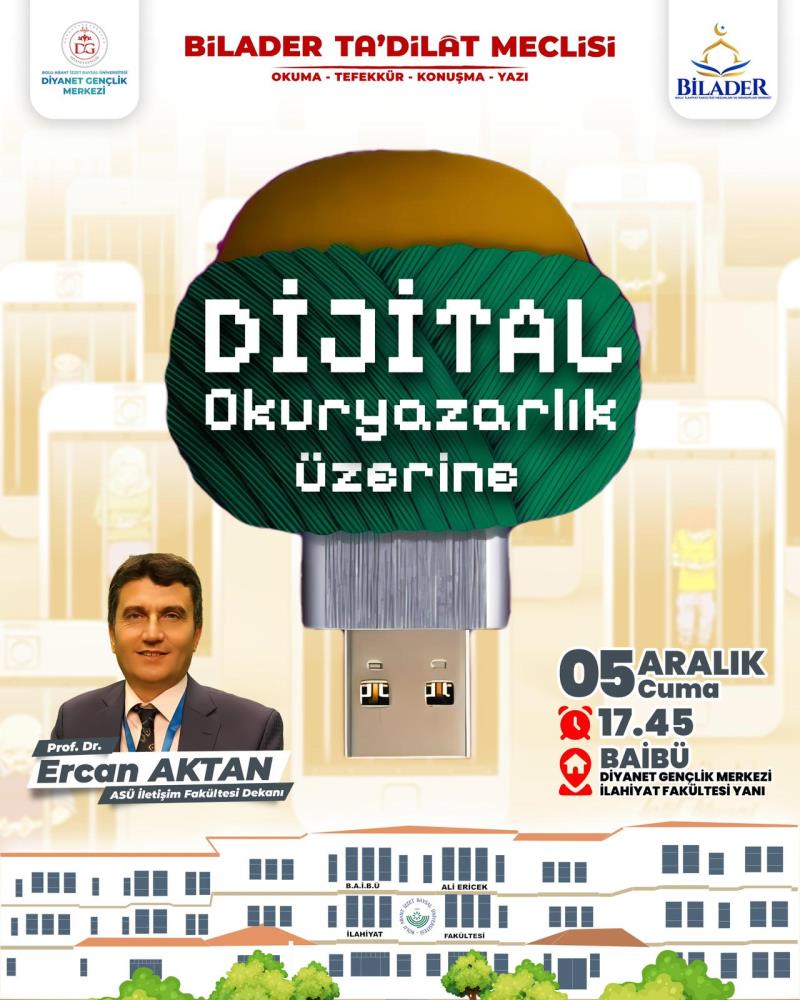 Bolu Abant İzzet Baysal Üniversitesi iş birliğiyle düzenlenen BİLADER Ta’dilat Meclisi etkinlikleri kapsamında, dijital çağın gerektirdiği bilinç ve farkındalık üzerine önemli bir söyleşi gerçekleştirilecektir. Etkinliğin konuşmacısı, Aksaray Üniversitesi İletişim Fakültesi Dekanı Prof. Dr. Ercan Aktan olacaktır.