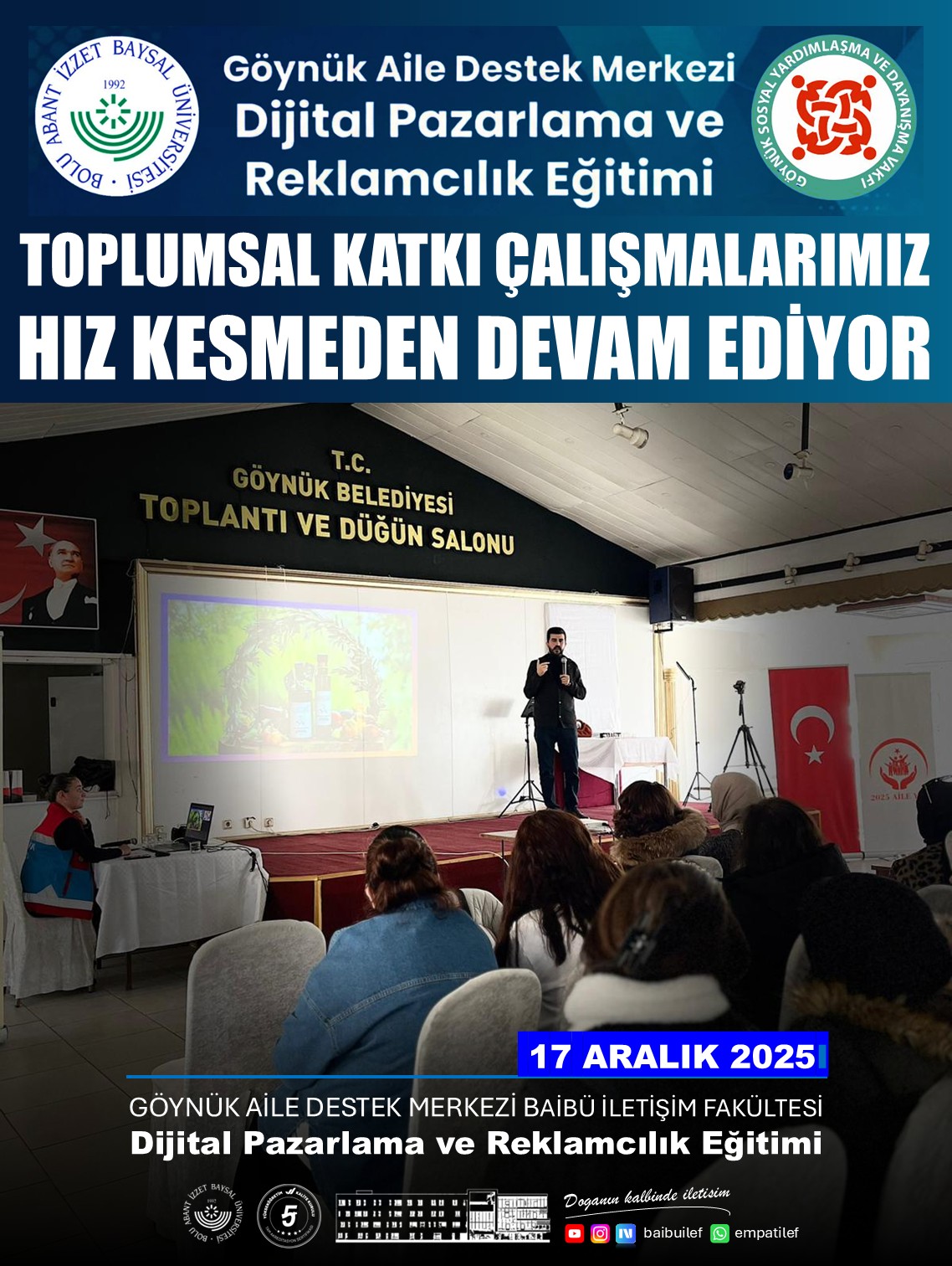 TOPLUMSAL KATKI ÇALIŞMALARIMIZ KAPSAMINDA GÖYNÜK AİLE DESTEK MERKEZİNDE DİJİTAL PAZARLAMA VE REKLAMCILIK EĞİTİMİ GERÇEKLEŞTİRDİK