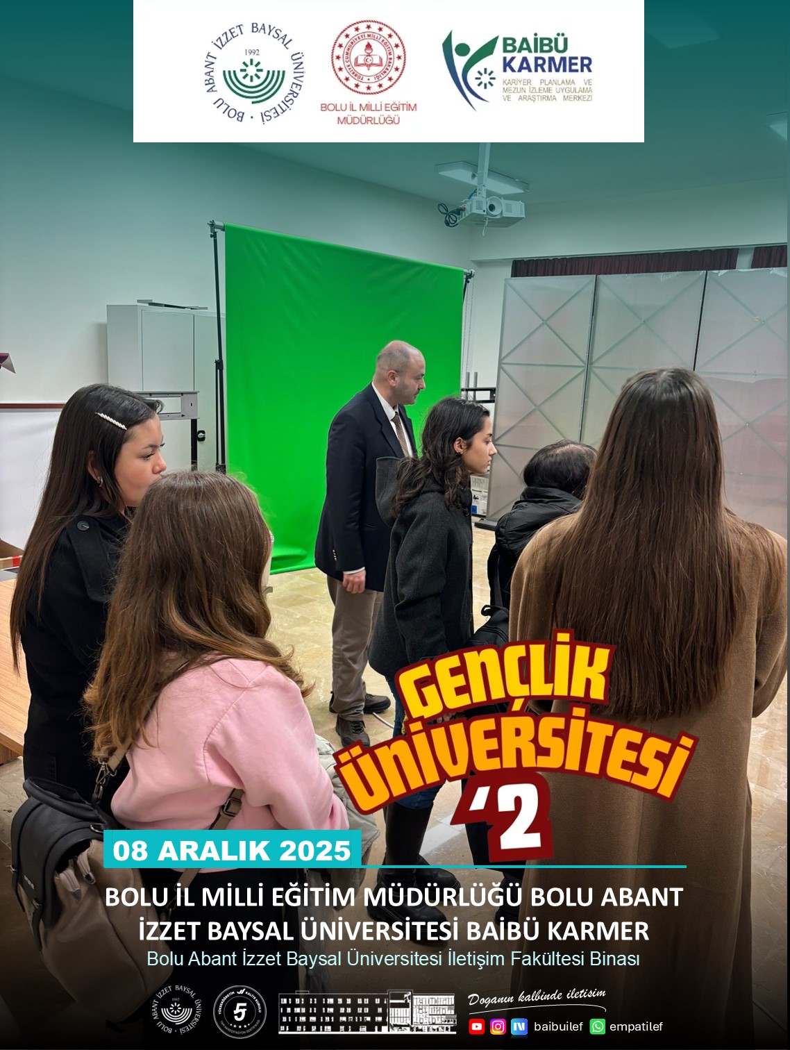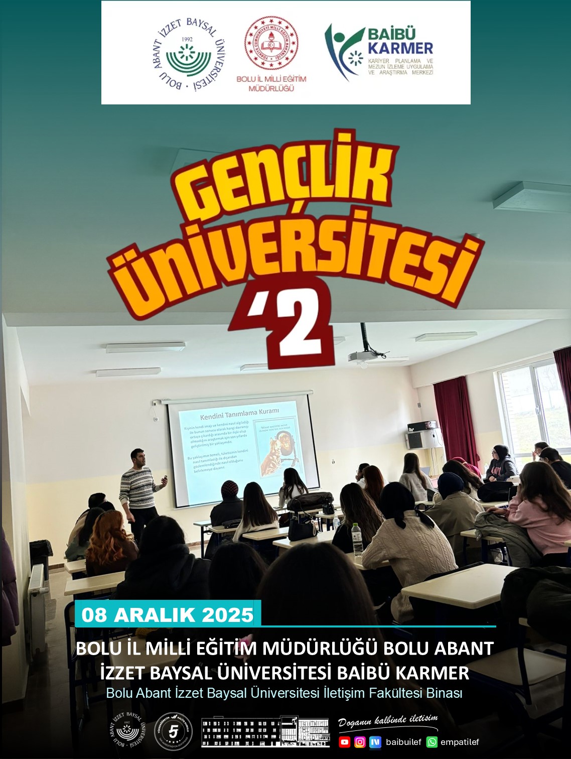 08 Aralık 2025’te ikincisi düzenlenen Gençlik Üniversitesi programı, sabah saatlerinde gerçekleştirilen açılış ve oryantasyon oturumlarıyla başladı. Bolu Abant İzzet Baysal Üniversitesi ile Bolu İl Millî Eğitim Müdürlüğü iş birliğiyle düzenlenen ve 8–10 Aralık tarihleri arasında KARMER koordinasyonunda yürütülen program, lise öğrencilerine üniversite yaşamını yakından tanıma imkânı sunuyor.
