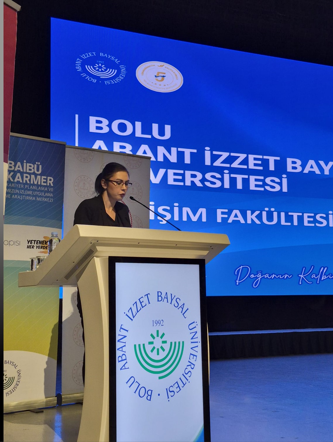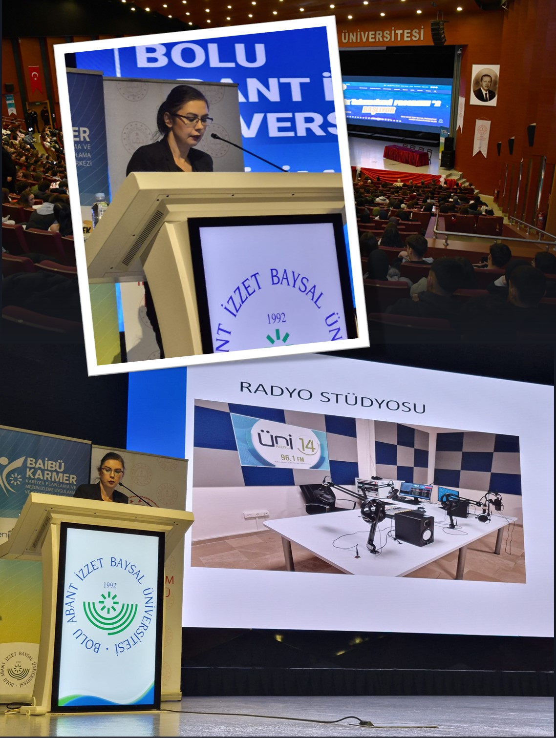 Programın sabah oturumunda İletişim Fakültesi tanıtımı gerçekleştirildi. Sunumu gerçekleştiren Dekan Yardımcısı ve Gazetecilik Bölümü Öğretim Üyesi Doç. Dr. Gülşah Sarı, fakültenin sunduğu akademik ve teknik imkânları, uygulamalı eğitim yaklaşımlarını, etik iletişim ilkelerini ve sektöre uyumlu vizyoner duruşunu kapsamlı bir biçimde aktardı.