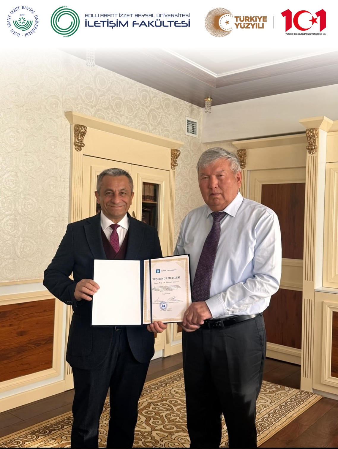BAİBÜ İletişim Fakültesi öğretim üyesi Prof. Dr. Himmet Karadal, girişimcilik ekosistemi ve iş birliğinin gelişmesine katkıda bulunmak üzere, T.C. Almatı Başkonsolosu Sayın Tuğba Alan Özdenfedakar’ı, T.C. Bişkek Büyükelçisi Sayın Mekin Mustafa Kemal Ökem’i, Turan Üniversitesi ve Kırgızistan-Türkiye Manas Üniversitesi yöneticilerini ziyaret etti. Kazakistan ve Kırgızistan’da yaptığı görüşmeler neticesinde; Başkanlığını yürüttüğü Uluslararası EMI Girişimcilik ve Sosyal Bilimler Kongresi’nin on ikincisinin 10–12 Haziran 2026 tarihlerinde Kazakistan’da Turan Üniversitesi’nde gerçekleşeceğini bildirdi.