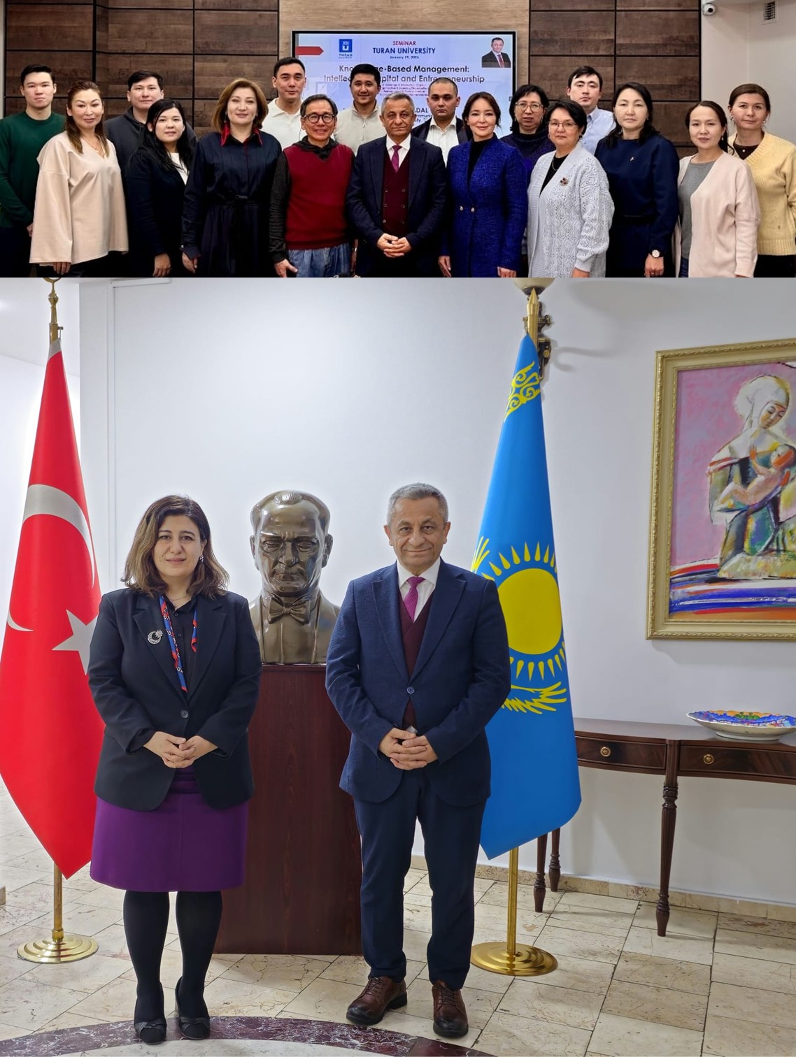 AD Scientific Index 2025 verilerine göre; girişimcilik alanındaki akademisyenler arasında Türkiye’de birinci sırada yer alan Prof. Dr. Himmet Karadal, Turan Üniversitesi’nde “Girişimci Düşünce ve Genç İstihdamı” başlıklı doktora tez savunmasında jüri üyesi olarak görev aldı. Aynı üniversitede doktora öğrencilerine “Bilgiye Dayalı Yönetim: Entelektüel Sermaye ve Girişimcilik” başlıklı bir seminer veren Karadal, entelektüel sermayenin etkin yönetim ve sürdürülebilir girişimcilik açısından taşıdığı stratejik öneme dikkat çekti. Program sonunda Turan Üniversitesi Rektörü Prof. Dr. Rakhman A. Alshanov ve Rektör Yrd. Prof. Dr. Gulzhanat Tayauova tarafından kendisine teşekkür belgesi takdim edildi.