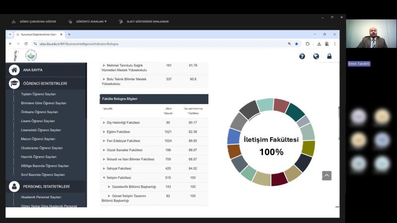 “Eğiticinin Eğitimi” programı ile kalite güvencesi süreçleri desteklenirken, Bologna Bilgi Paketlerinde %100 doluluk oranına ulaşılması akademik şeffaflık ve standartlaşma açısından dikkat çekici bir başarı olarak kaydedildi.