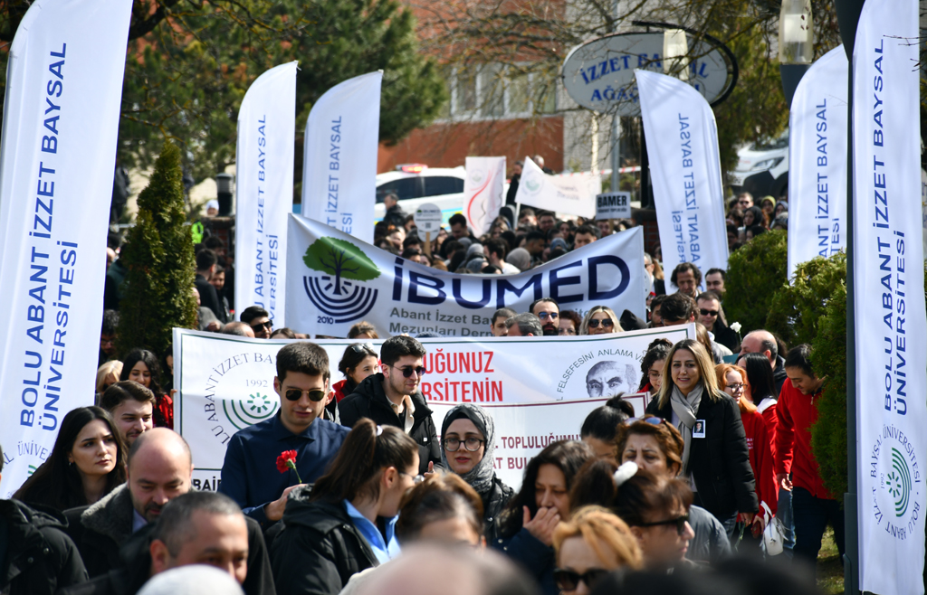 Merhum İzzet Baysal’ı anma töreni, Gölköy yerleşkesinde gerçekleştirilen İzzet Baysal’a saygı yürüyüşü ile başladı. İzzet Baysal’a sevgi, saygı ve özlemlerini dile getiren pankartlar taşıyan akademik-idari personel, protokol üyeleri, İzzet Baysal Felsefesini Anlama ve Yaşatma Topluluğu üyeleri, siyasi parti ve STK temsilcileri, öğrenciler ve yurttaşlar, İzzet Baysal Kültür Merkezi önünden Anıt Mezar’a saygı yürüyüşü gerçekleştirdi.